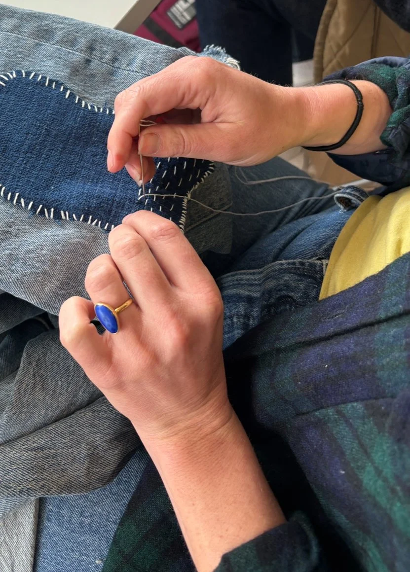 When anthropologists dig up civilizations and they find pottery used to prepare meals, they learn so much about a culture and how the people cared for each other. What will future anthropologists find out about us? Plastic clothes from our Shein hauls? Did we care about who made those clothes we wore once and threw away? Or will they find the bones of my Oldsmobile? A well-loved pair of denim jeans, repeatedly repaired with whimsical designs and colors?